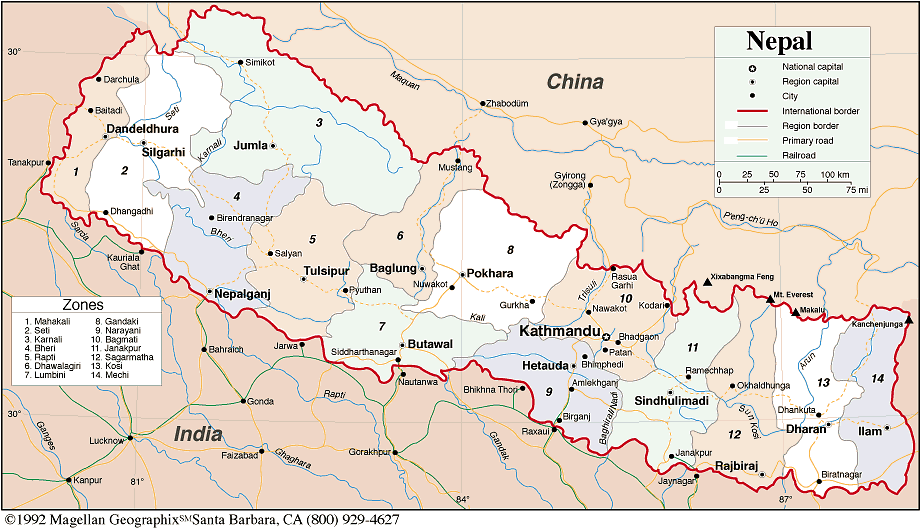 | Nepal (84K) | Nepal - Major Roads (70K) (Maps made from vector data) | ||